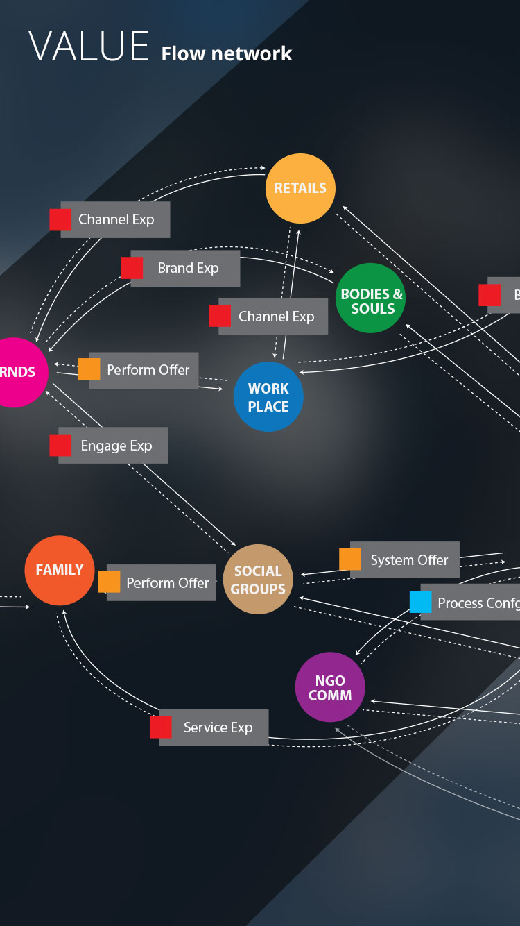 Human focused strategic framework by design thinking and applying user centered designs with solid support of stakeholder analysis, can help create implicit and explicit value streams within a shared value exchange ecosystem.